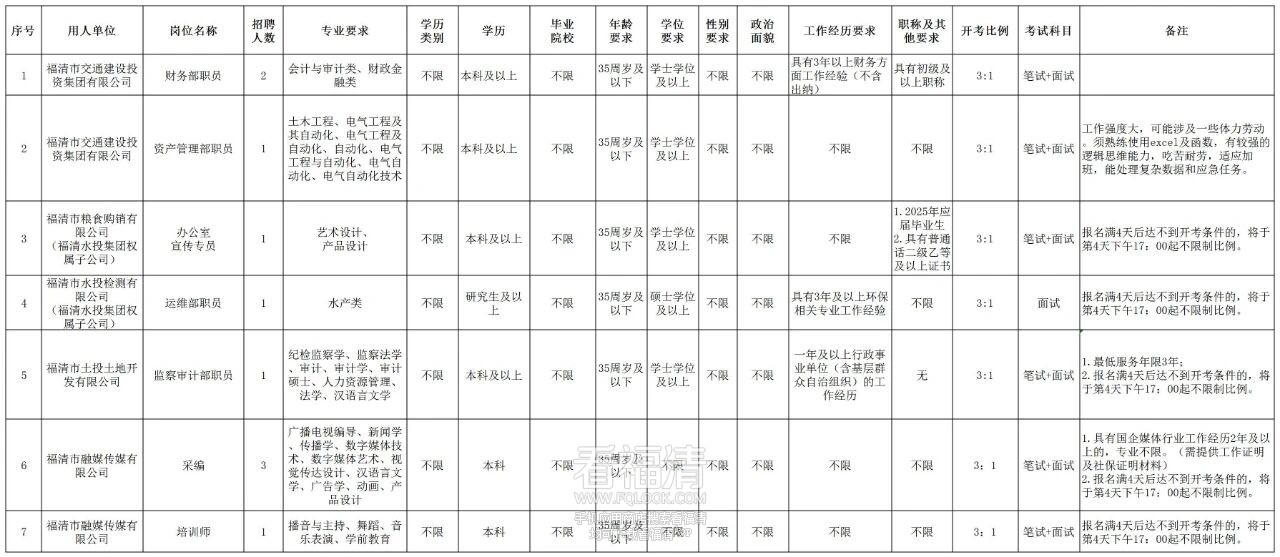 2025年福清市属国有企业第三批招聘!