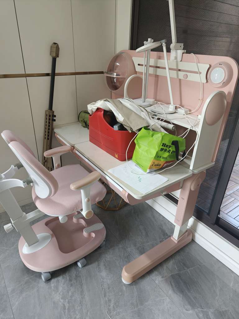 黑白调粉色书桌,孩子长大了用不上,一张桌子,一把椅子(如图,不包括台灯),需要自己来抬走。